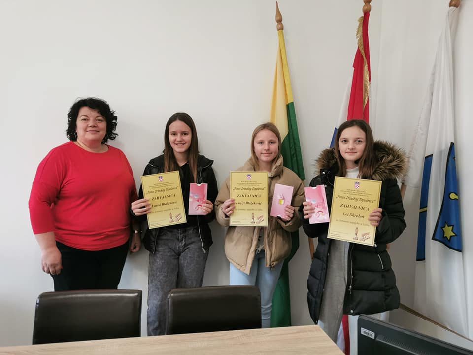 Općinska načelnica Jasna Mikles Horvat primila je u prostorijama Općine naše uspješne šahistice: Leu Škrobot, Luciu Blažeković i Larisu Blažeković.